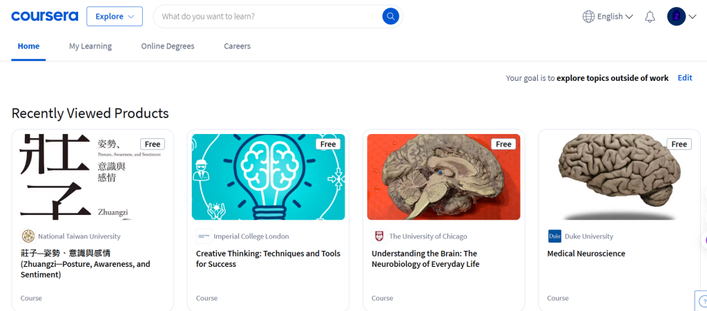 • 若追求職業證書及知名大學課程,選擇Coursera